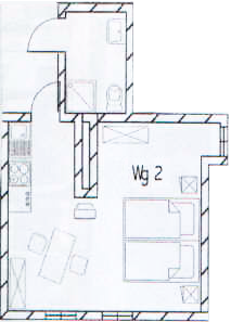 Wohnung 2:Unsere Wohnung 2 liegt im 2. Stock und ist ca. 34m² groß. Sie eignet sich für 2 Personen und ist ausgestattet wie Wohnung 3. Dieses Appartement liegt Richtung Osten und hat einen schönen Blick ins Grüne.