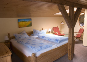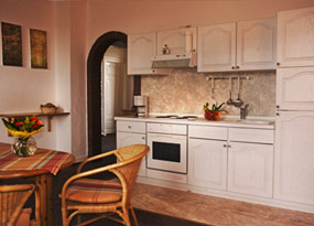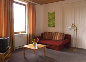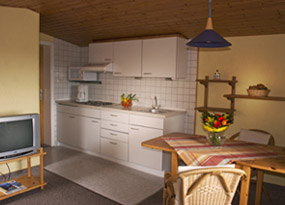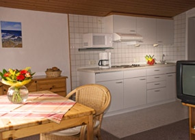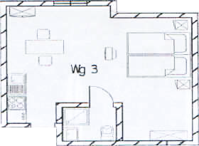 Wohnung 3:Unsere Wohnung 3 liegt im 2. Stock. Das gemütliche Appartement für 2 Personen ist ca. 30m² groß. Es ist ausgestattet mit einem Badezimmer mit Dusche/WC und einem Wohn-Schlafraum. Hier befindet sich eine Küchenzeile, die alles enthält, was man zur Selbstversorgung braucht (Herd, Mikrowelle, Toaster, Kaffeemaschine, Wasserkocher, Geschirr...).