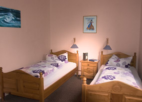 Wohnung 1:Unsere Wohnung 1 befindet sich im 1. Stock und ist ca. 70 m² groß. Sie eignet sich für 2 - 4 Personen. Sie ist ausgestattet mit einem Bad mit Dusche/WC, Flur, einem Wohnbereich mit Küchenzeile, und zwei Schlafzimmern für jeweils 2 Personen. Auf Wunsch stellen wir auch gerne ein Babybett und Hochstuhl zur Verfügung.Im Wohnbereich sind außerdem ein Digitalfernseher und ein CD- Radiorekorder. Die Küche ist voll ausgestattet mit Herd, Backofen, Wasserkocher, Kaffeemaschine, Mikrowelle, Toaster, Kühlschrank mit großem Gefrierfach (interessant für Angler), Geschirr.... Die Wohnung ist durch die hohen Fenster und Decken sehr hell und freundlich.